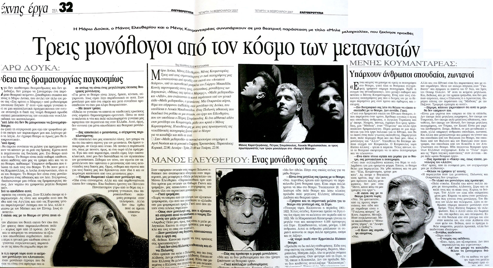 Μηνάς Χρηστίδης, Στο θέατρο πάμε καλά, Σαββατιάτικη Ελευθεροτυπία, 24/2/07.